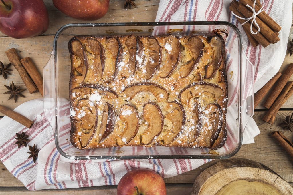 - Coloca en un molde y cubre con rodajas de la segunda manzana.