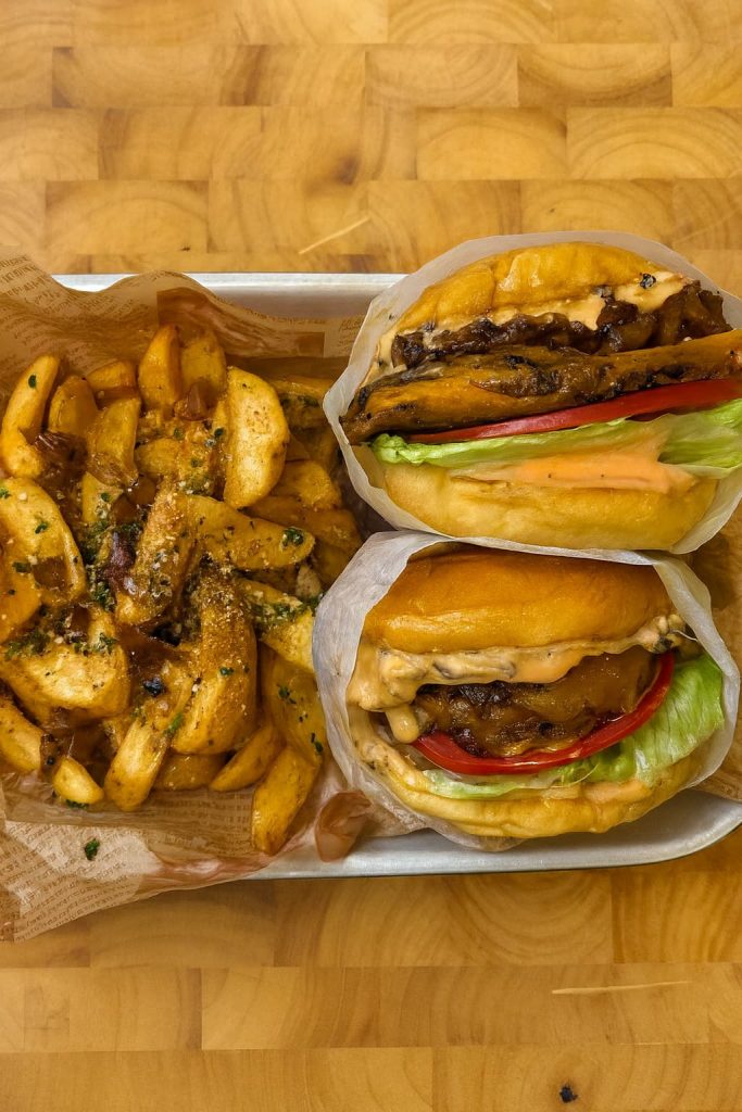 El resultado es todo lo que una hamburguesa de alubias negras debería ser: consistente, sabrosa y nada de textura pastosa. Las hamburguesas mantienen su forma, el aliño está perfectamente equilibrado y la salsa estilo “animal” lo une todo con un toque cremoso y ácido.