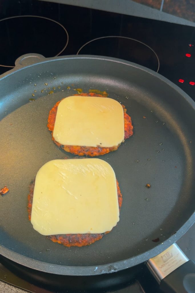 Formar y cocinar. Dales forma a las hamburguesas y refrigéralas para que se compacten. Cocínalas en sartén hasta que estén doradas y crujientes. Añade queso vegano si lo deseas.