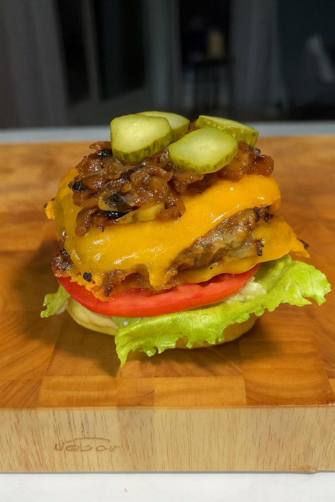 - Haz una doble hamburguesa para una comida más contundente.