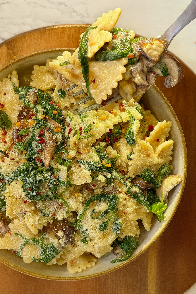 Por qué te va a encantar esta pasta cremosa con espinacas y champiñones