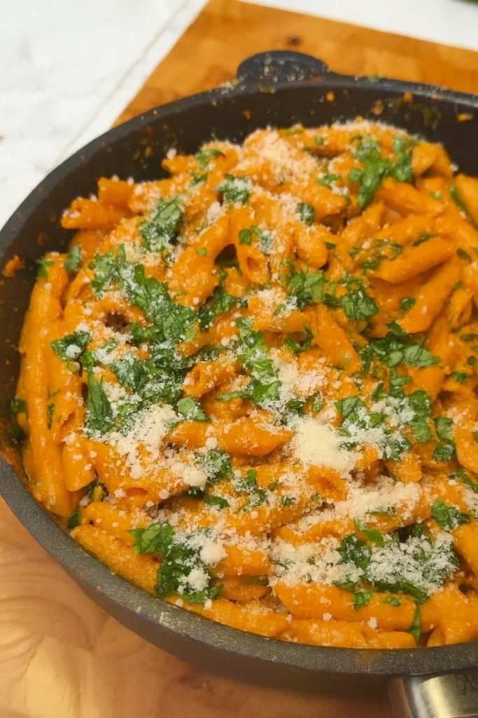 Si buscas un plato de pasta reconfortante, cremoso y cargado de verduras, esta Pasta Cremosa de Espinacas y Tomato en Una Sola Olla se convertirá en tu receta de cabecera. Está llena de tomates frescos, ajo aromático y espinacas tiernas, todo cocinado en una salsa aterciopelada sin lácteos.