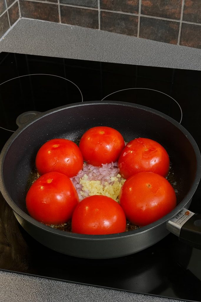 Cocina los tomates, la cebolla y el ajo hasta que estén tiernos y aromáticos.