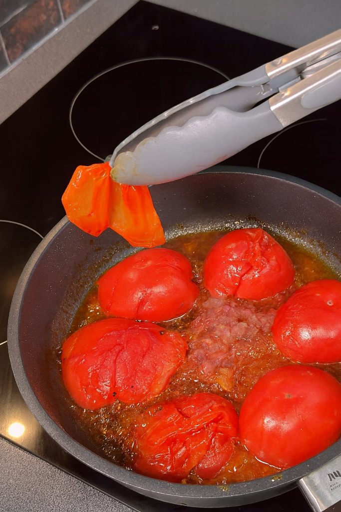 Retira las pieles de los tomates para una salsa más suave.